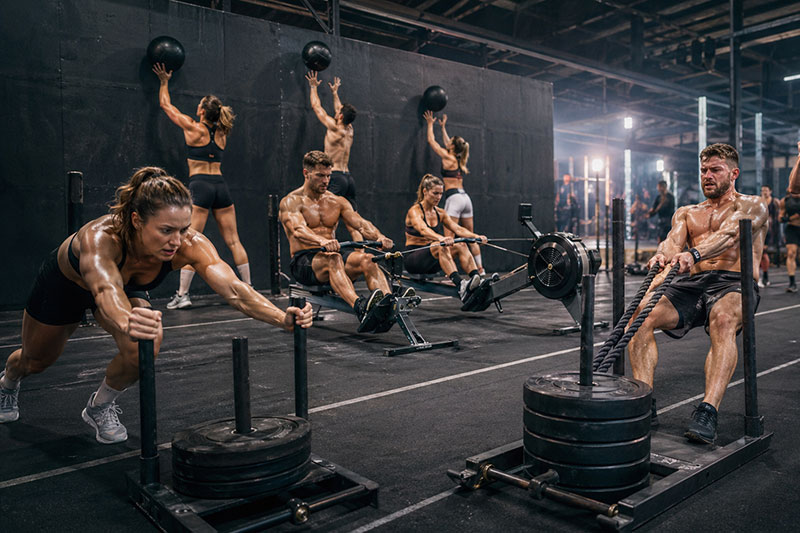 - 50m Sled Pull: Tracción del trineo con una cuerda.