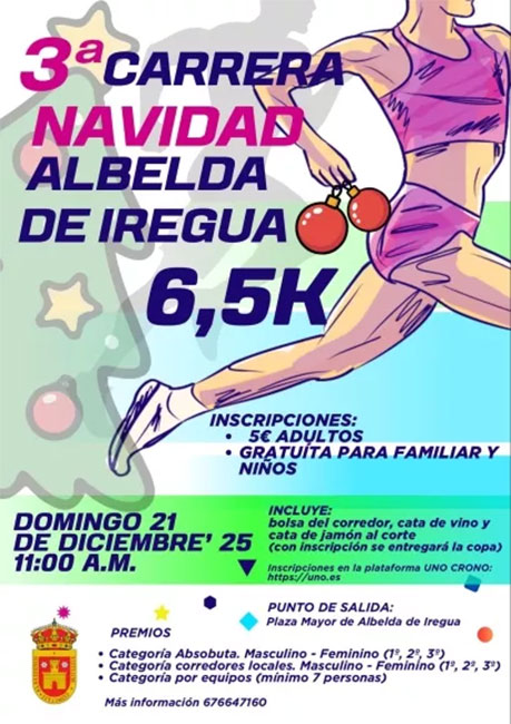 El Ayuntamiento de Albelda de Iregua organiza la tercera edición de la Carrera de Navidad Albeldense, que se celebrará el próximo 21 de diciembre.
