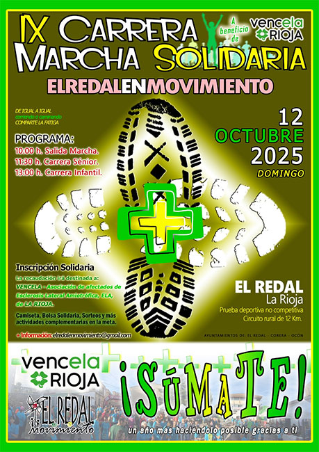 La Asociación El Redal en Movimiento organiza el domingo 12 de octubre la novena edición de la Carrera y Marcha Solidaria no competitivas por un circuito de 12 kilómetros.