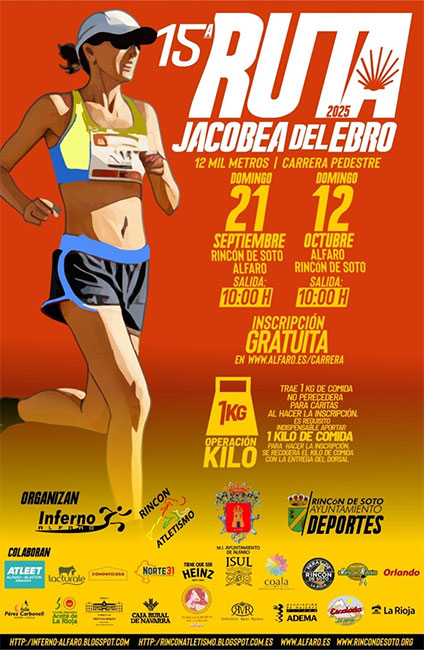 Decimoquinta edición de la Ruta Jacobea del Ebro, prueba de dos etapas organizada por el Club Deportivo Inferno y el Club Rincón Atletismo, en colaboración con los Ayuntamientos de Alfaro y de Rincón de Soto.