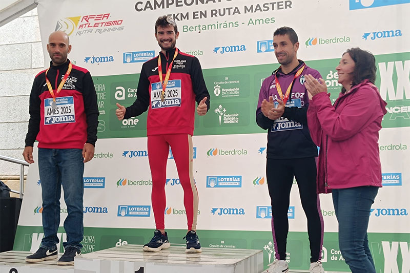 Dos nombres han destacado en el plano individual. Recién aterrizado del Europeo de Madeira, donde logró tres medallas (plata en 10.000m y bronce individual y oro por equipos en cross), Nacho García (ADAS CUPA), ha gestionado la corta recuperación para imponerse en el asfalto gallego con un tiempo de 15:28, colgándose la medalla de oro individual y también por equipos en categoría M35.