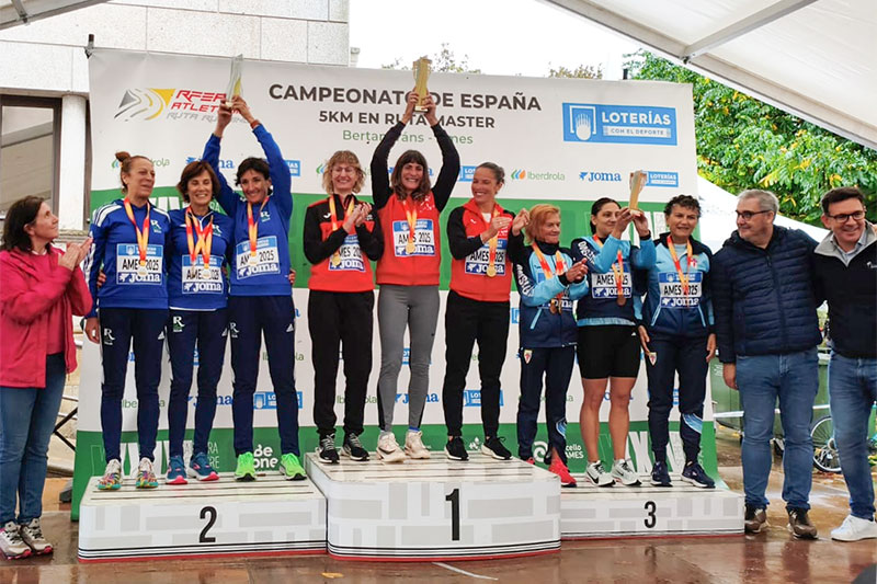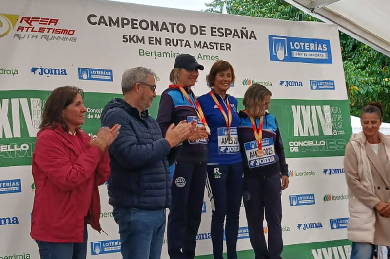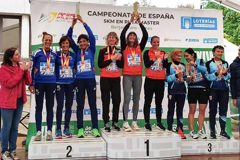 El éxito del club riojano se ha completado con otras dos medallas de plata colectivas. El equipo M50, compuesto por Manel Vergara, Juan Carlos Irago, Francisco Javier López y Gustavo Santos, se ha alzado con el subcampeonato. El mismo resultado ha obtenido el equipo femenino F45 del Maratón Rioja, formado por Elena Clavijo, María Miranda y la propia Maru Hernaiz, cerrando una jornada de notable éxito para los fondistas Máster de la región.